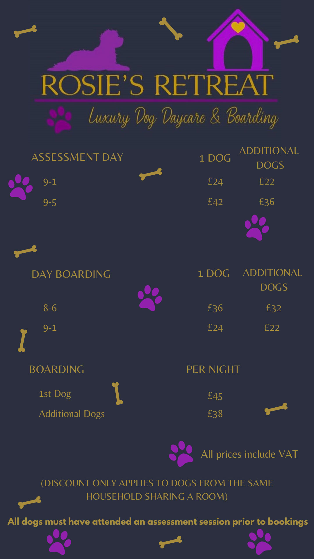 Before your dogs stay they must come for an assessment to see if they are well suited to our facility.
